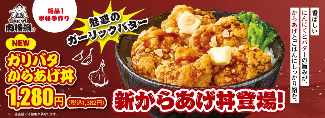焼きたて本格手作りの肉丼専門店、第104 代肉横綱の冬の新商品は『ガリバタからあげ丼』。